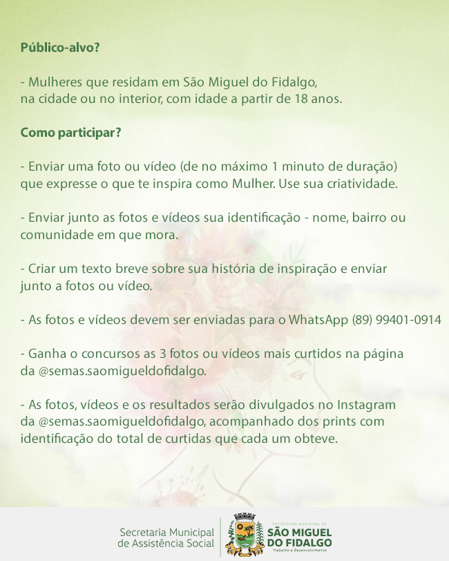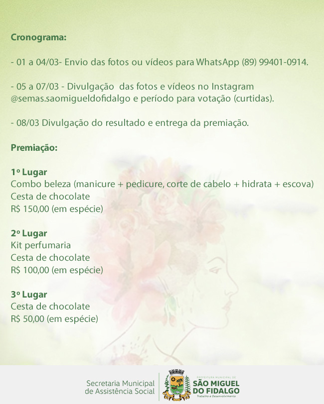A Prefeitura Municipal de São Miguel do Fidalgo, através da Secretaria Municipal de Assistência Social e do CRAS, realiza Ação Alusiva ao dia da Mulher.