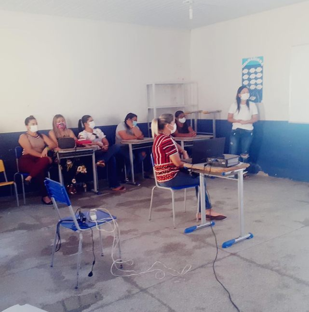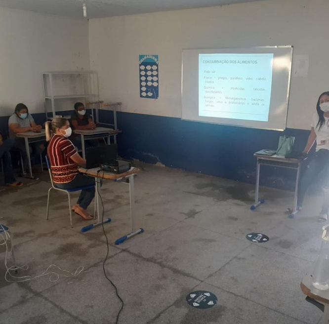 As merendeiras das Escolas Municipais de São Miguel receberam uma capacitação com a nutricionista Carlene Mesquita sobre o manuseio correto dos alimentos e higiene conforme as normas sanitárias.