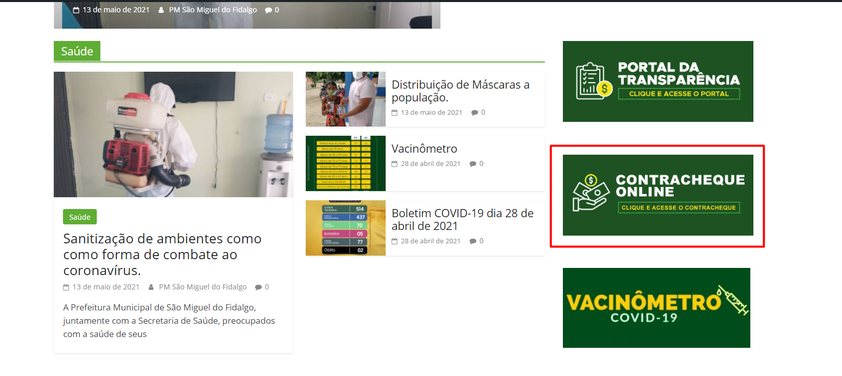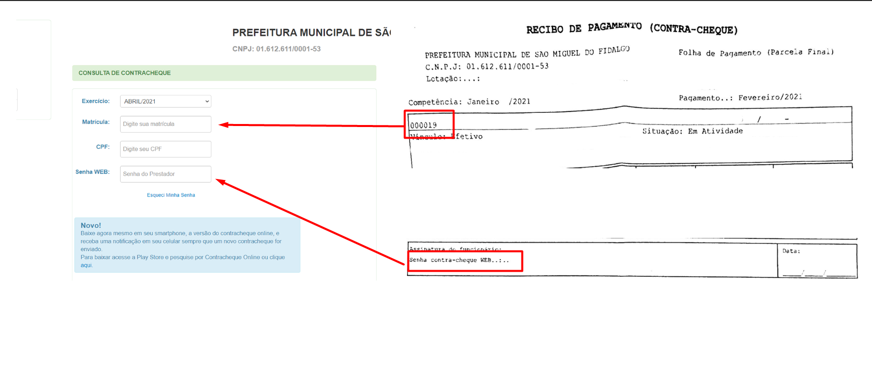 Acesse o site da Prefeitura Municipal (http://saomigueldofidalgo.pi.gov.br/) e procure por Contracheque Online.