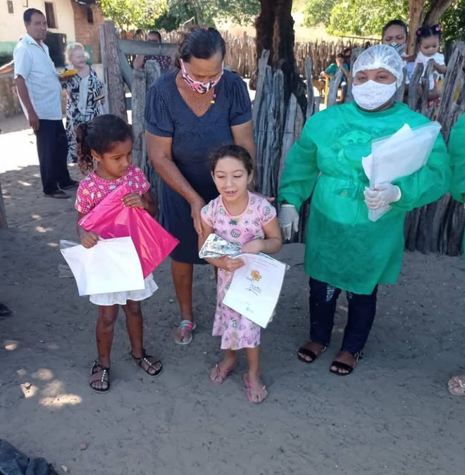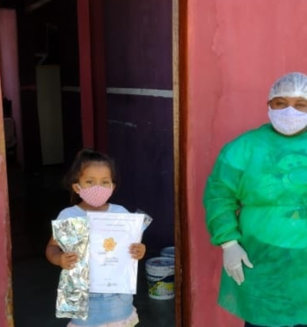 Os materiais entregues passaram por um processo de higienização e a equipe utilizou equipamentos de segurança no ato da entrega, seguindo o protocolo recomendado pela OMS.