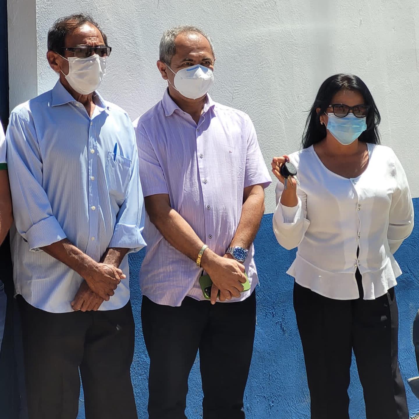 O prefeito Dr. Erimar Soares fez a entrega oficial da ambulância no pátio da Unidade Básica de Saúde e contou com a presença do vice-prefeito Elves Dias, vereadores, secretários municipais e colaboradores da saúde.