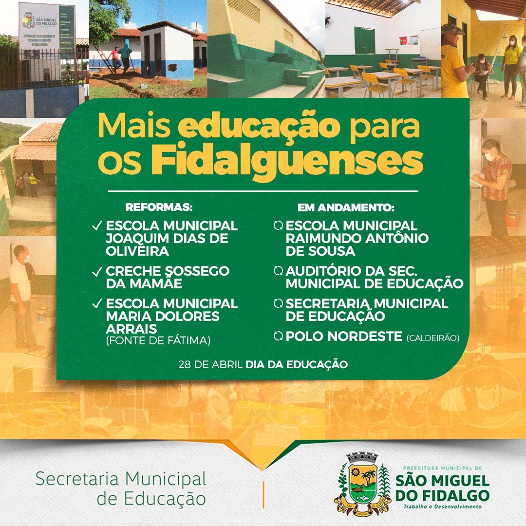 Neste dia 28 de abril, dia da Educação, a Prefeitura de São Miguel do Fidalgo se destaca pelas inúmeras melhorias já realizadas, seja nas estruturas das escolas da zona urbana ou rural